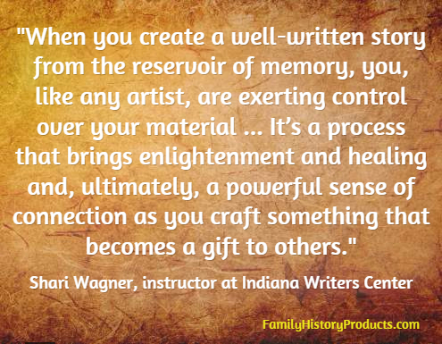 From a practical standpoint I think is is important not to let the thought of writing about one's entire life overwhelm us. Taking just a prominent event or concentrating on a certain time period in our lives and writing about it is a great way to get started.